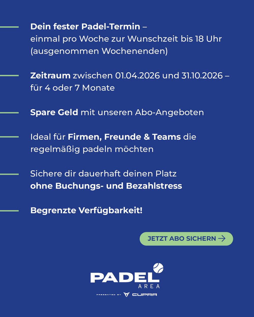 Padel Abo für die Sommersaison 2026 (01.04.2026 - 31.10.2026)